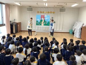 おめでとう会では、子どもたちの元気いっぱいな新年の挨拶から始まりました。